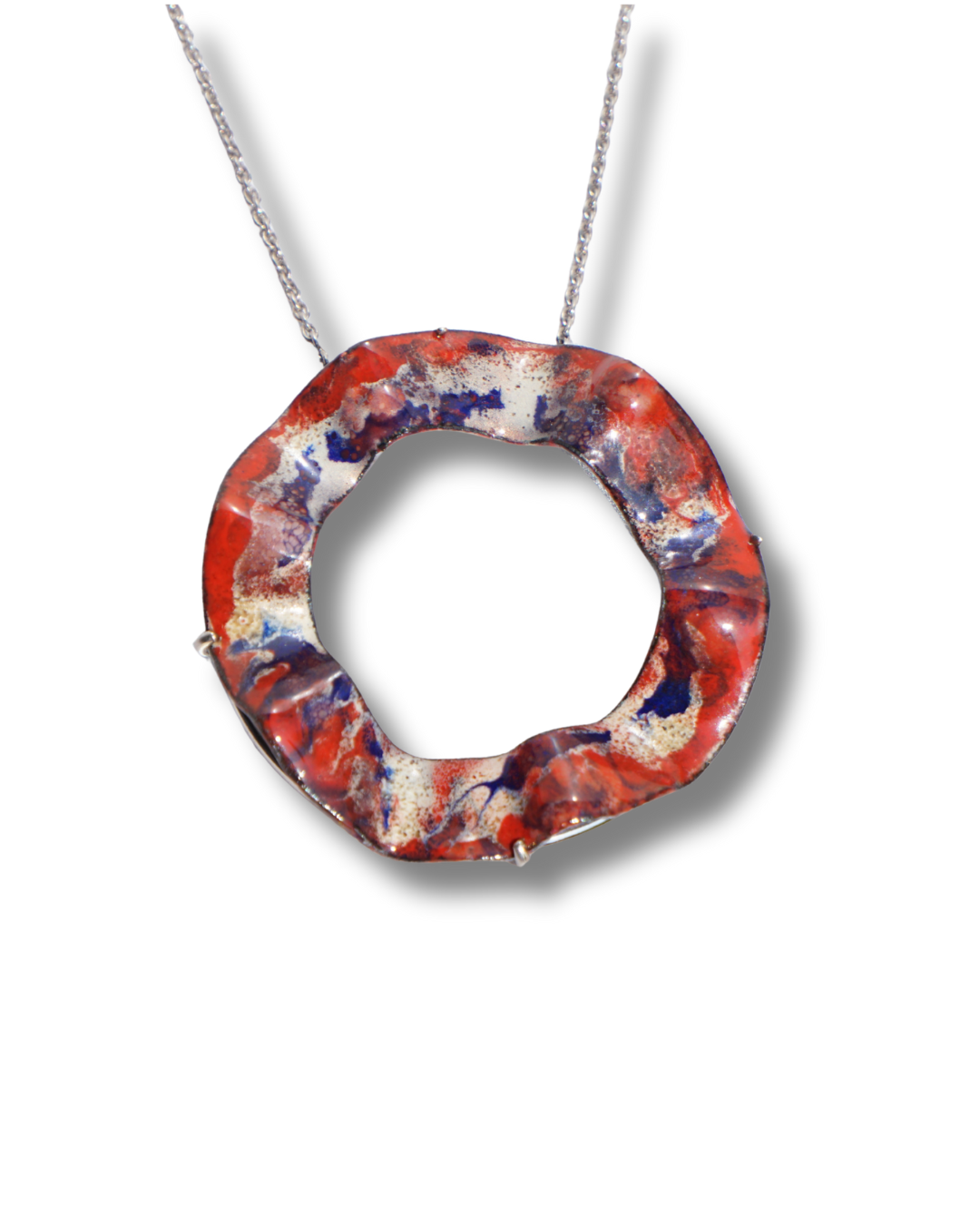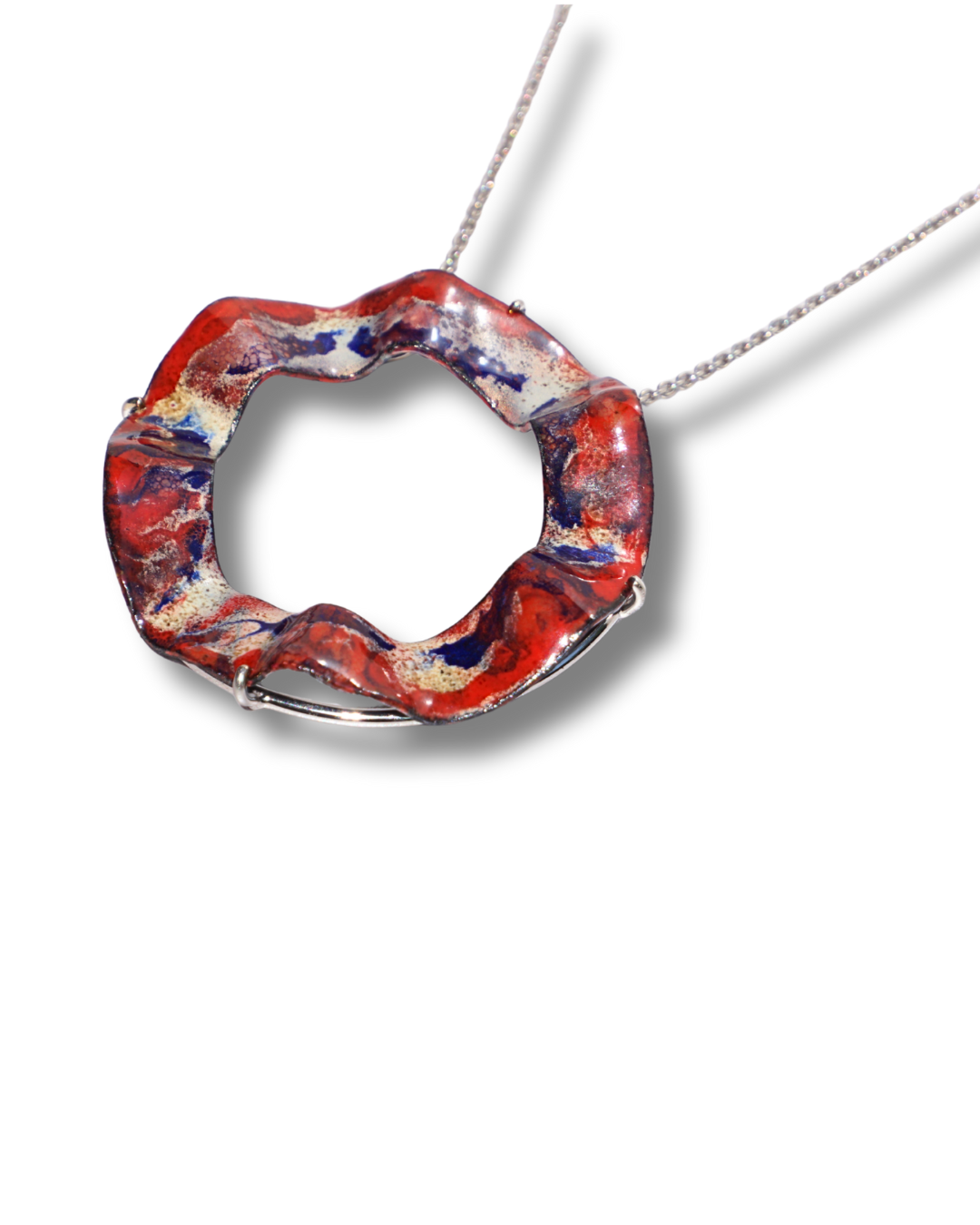 Here, the circle burns bright. It is the fire of creation, of courage, of voice. The enamel swirls like molten emotion — fierce, alive, untamed. This is where desire turns to action, and dreams find their edge.